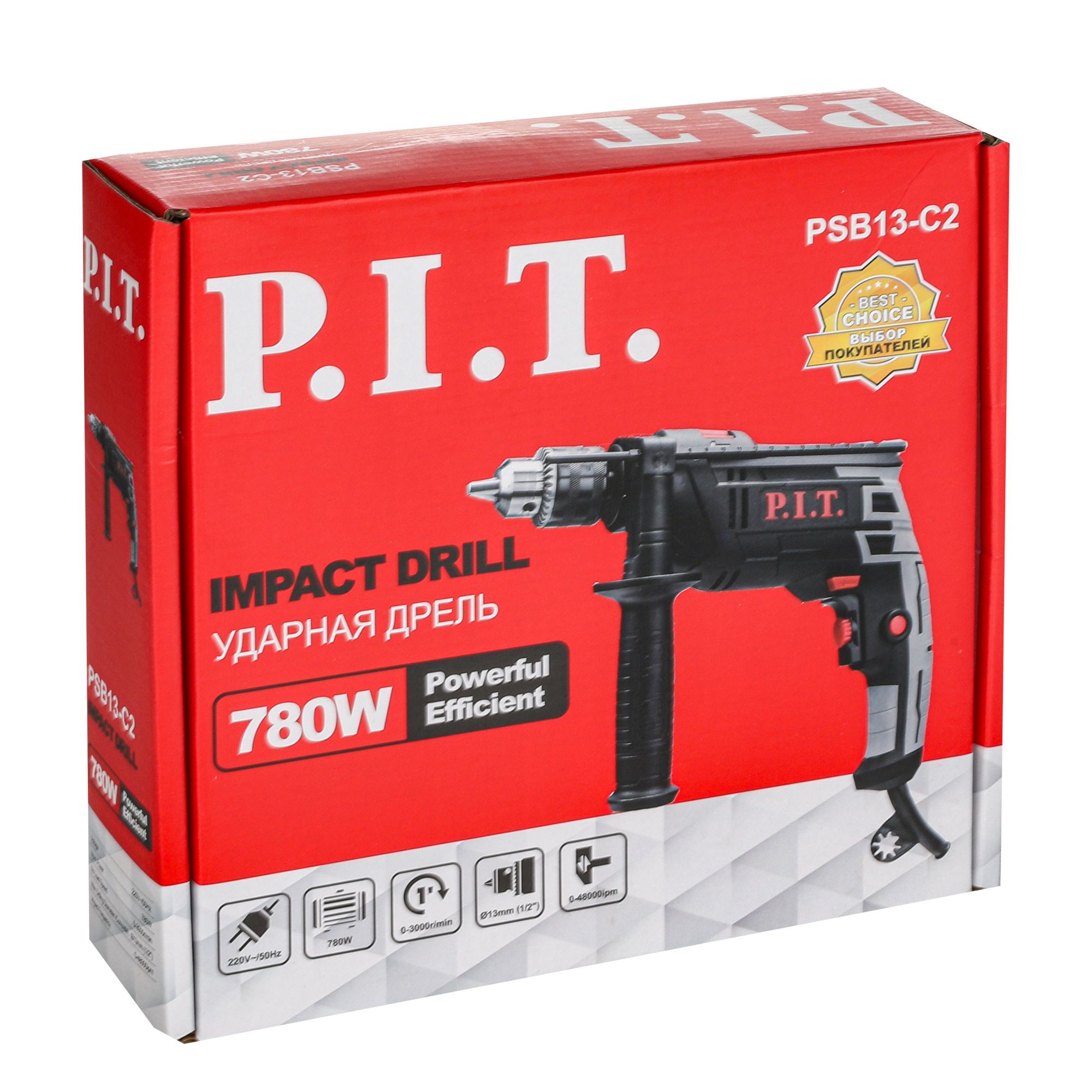 Дрель P.I.T. ударная PSB13-C2 (780Вт. 13мм, 0-3000об, ключевой патрон) (5)