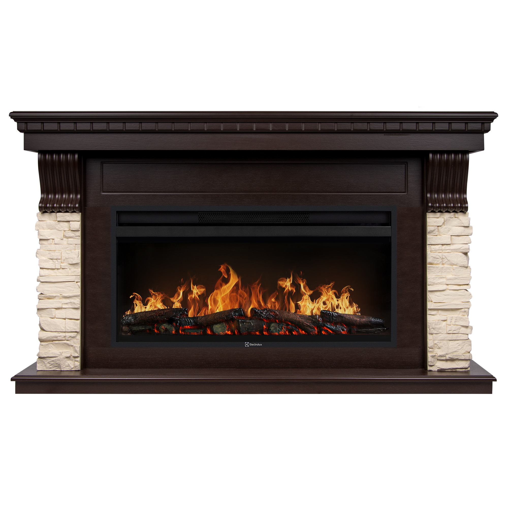 Каминокомплект: Очаг Electrolux EFP/P-4220LS, портал Michigan 42 камень молочный, шпон темный дуб