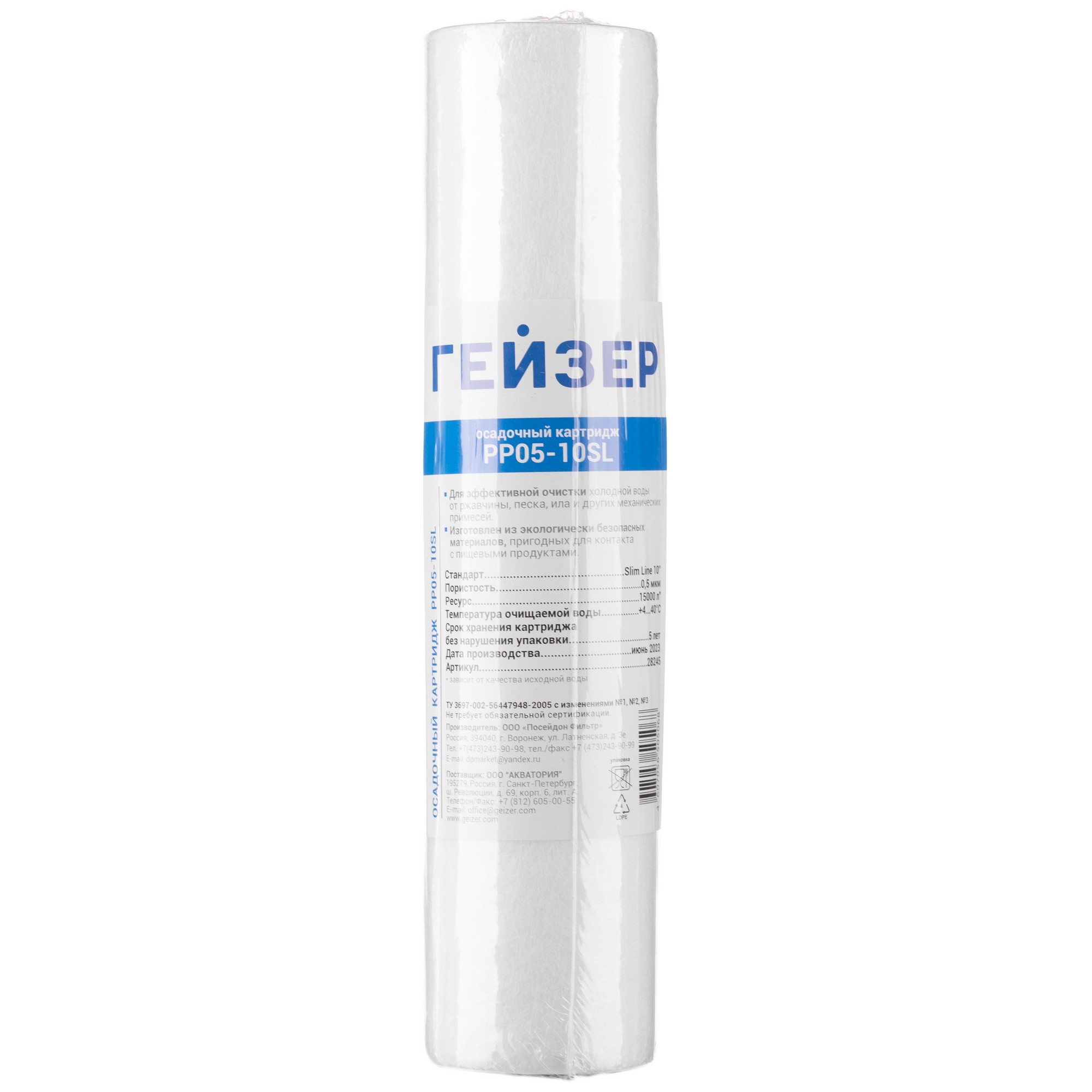 Картридж механической очистки воды SL10, 0,5мкм, вспененный полипропилен (28245) (Гейзер)