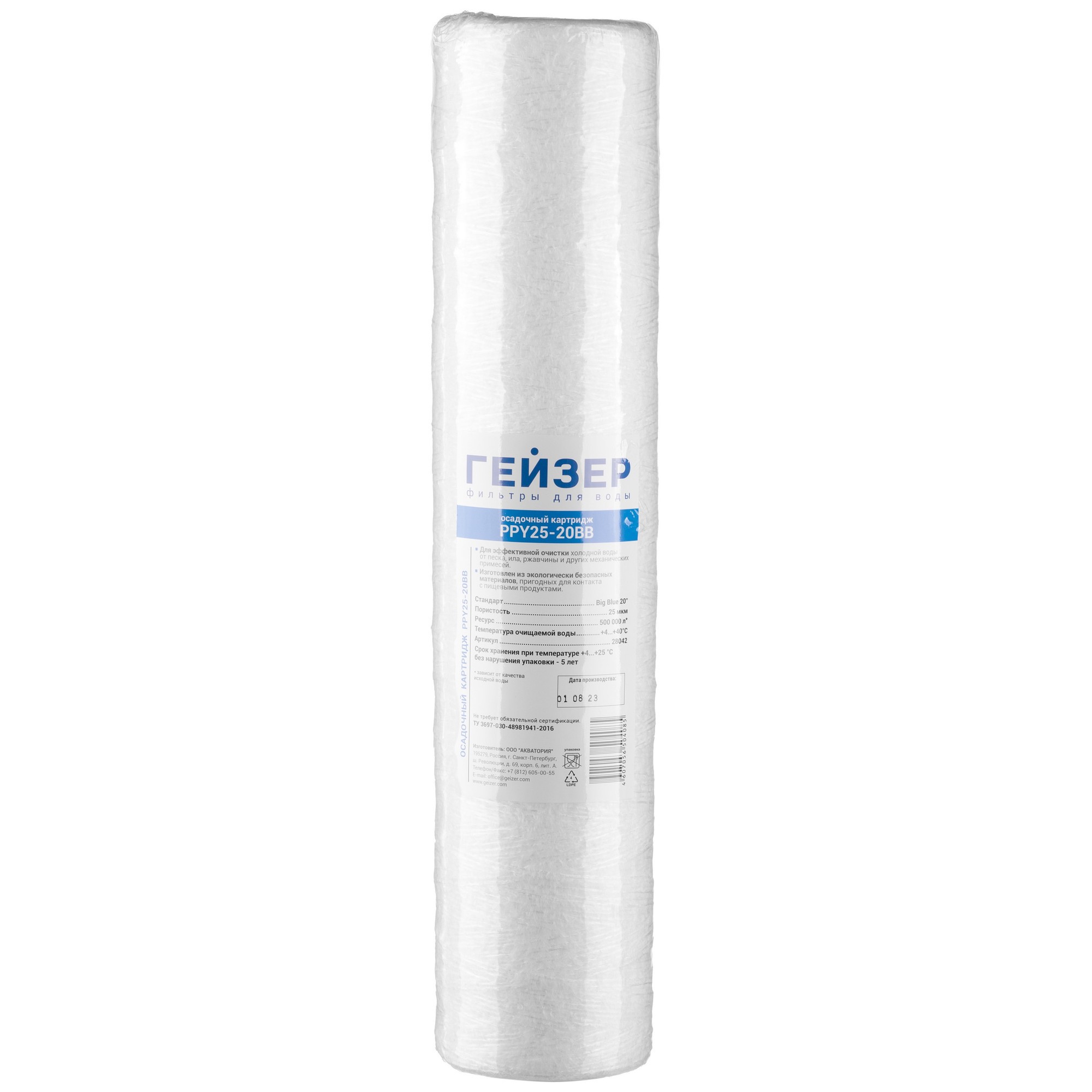 Картридж PPY 25 – 20ВВ предназначен для очистки воды от нерастворимых примесей (более 25 мкм). Производство: Россия.
