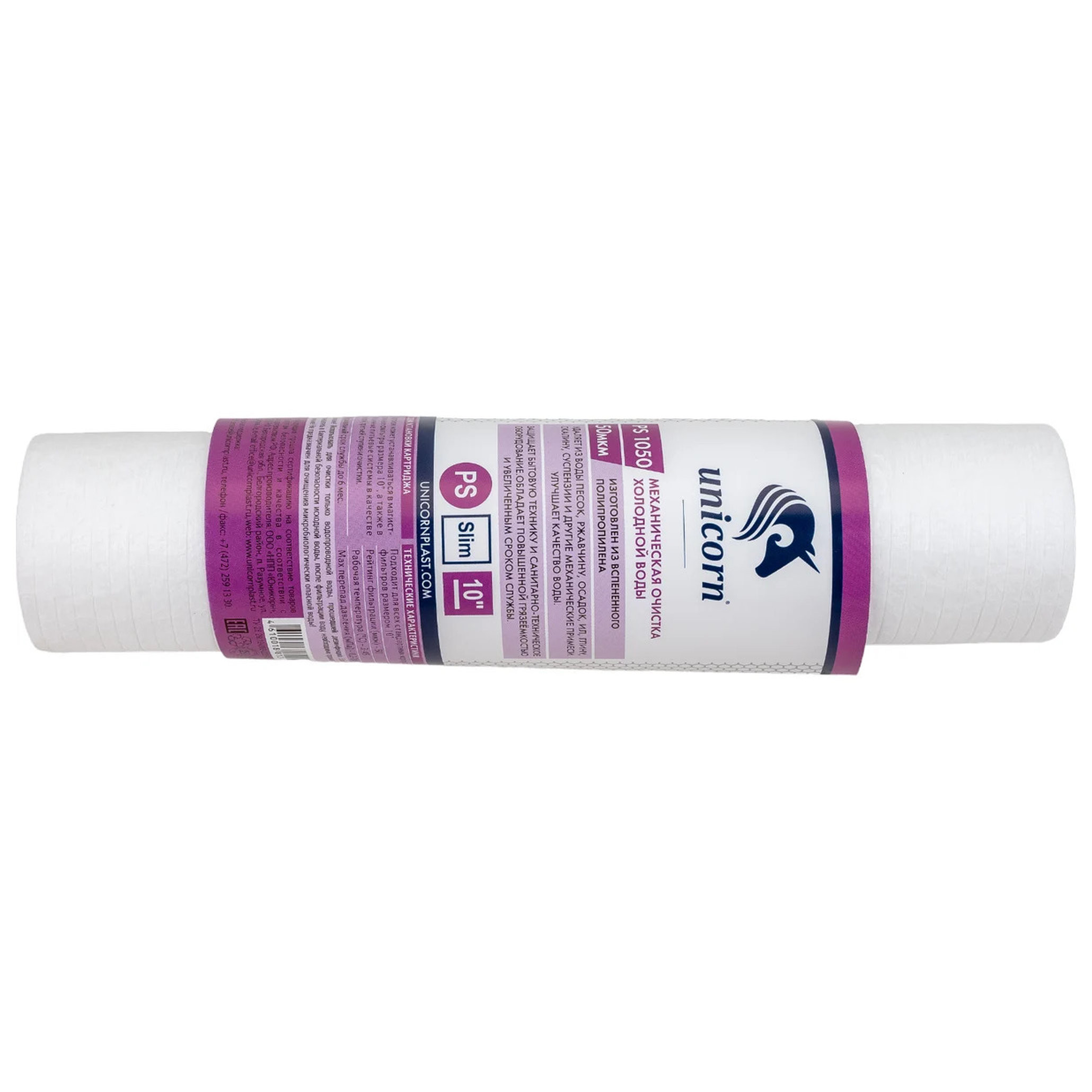 Механический картридж Unicorn на холодную воду, 10'', 50 мкм, PS 1050 S 541194 изготовлен из высококачественного вспененного полипропилена.