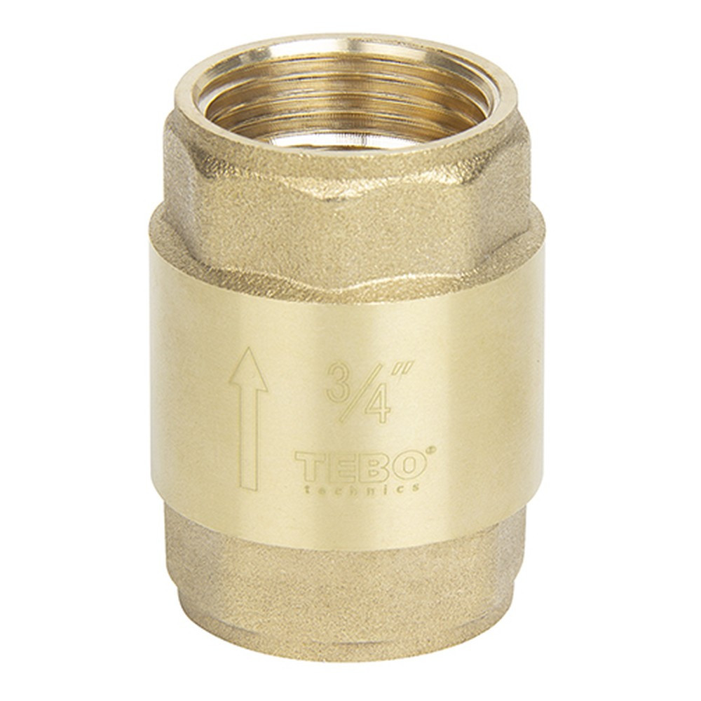 Клапан обратный TEBO ВН/ВН 3/4" (T-Ко.701.34.CN) – аналогичный латунный клапан с внутренней резьбой 3/4", предназначенный для предотвращения обратного потока воды и других жидкостей. Рабочая температура до 100°C, номинальное давление – 40 бар