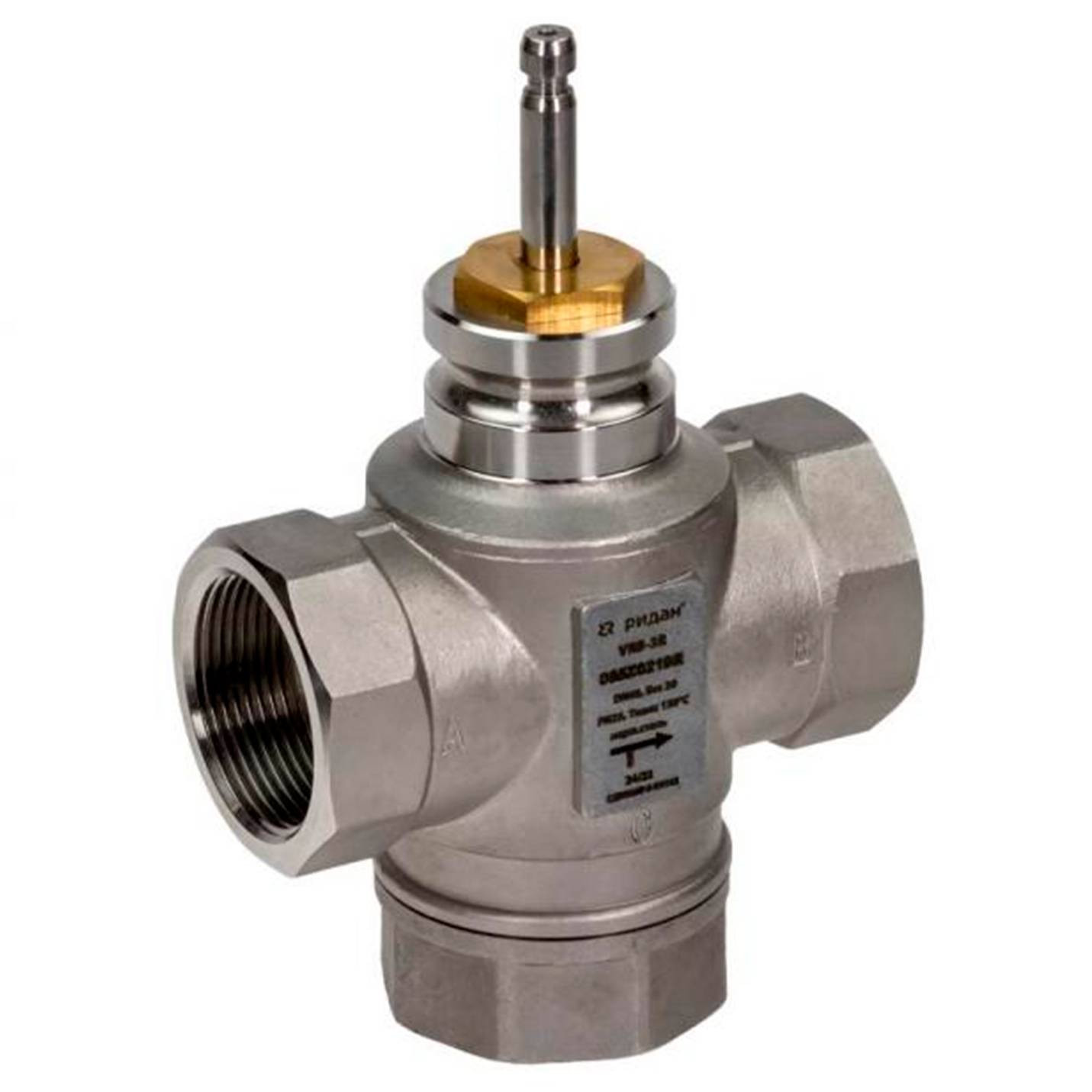 Клапан регулирующий РИДАН VRB-3R PN25 DN40 KVS20 Tmax130, 3-х ход., седельный, внутр.рез.,нерж.сталь