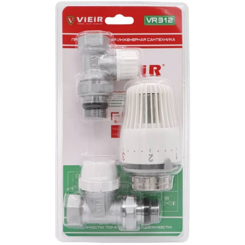 Комплект VIEIR радиаторный прямой (клапан термостат. клапан запорный,термоловка) 3/4" VR313 (25/1)