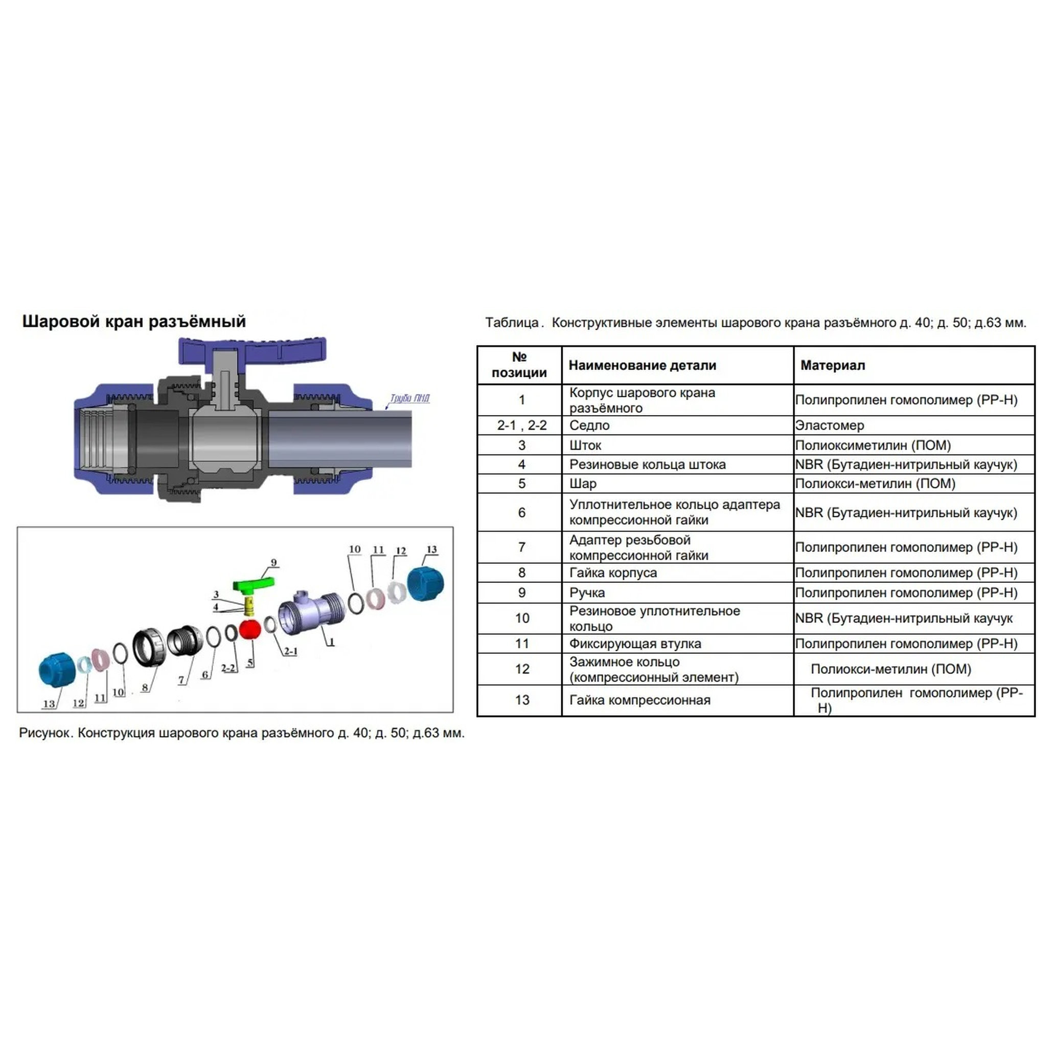 Кран шаровой предназначен для регулирования потока воды в ПНД трубопроводах различного назначения и диаметра условного прохода от 1/2 до 2 дюймов (диаметр наружный труб от 20 до 63 мм). Конструкция шарового крана с внутренней резьбой с одной стороны и наружной с другой обеспечивает его широкое применение при монтаже разнообразных узлов систем подачи воды из полиэтиленовых труб.