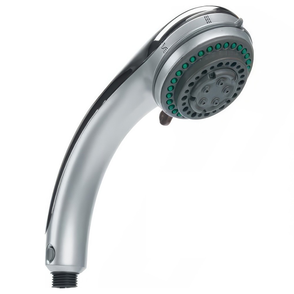 Лейка душeвая JIF 543 — ручная душевая лейка стандартного исполнения с подключением 1/2" (гайка) для шланга. Предназначена для подачи воды в душевых системах бытового назначения. Изделие изготовлено из пластика с хромированным покрытием.