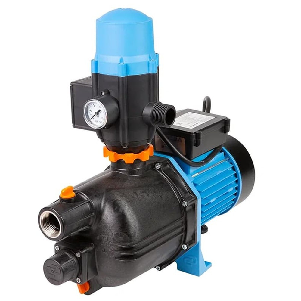 Поверхностный насос-автомат Джилекс ДЖАМБО Комфорт 70/50 П-К пластиковый с устройством, контролирующим наличие потока в магистрали, арт. 4001 — максимальный расход 70 л/мин. Максимальный напор 50 м. Материал корпуса насоса: пластик. Оснащен устройством, контролирующим наличие потока в магистрали. В комплект входит встроенный регулирующий клапан и блок автоматики.