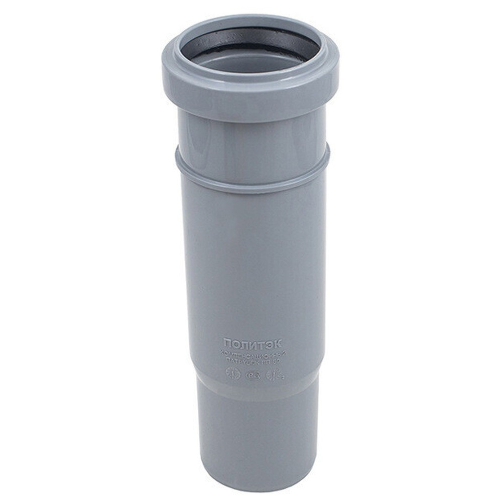 Патрубок компенсационный канализационный ПП 50 мм с раструбом серый (уп.60 шт)