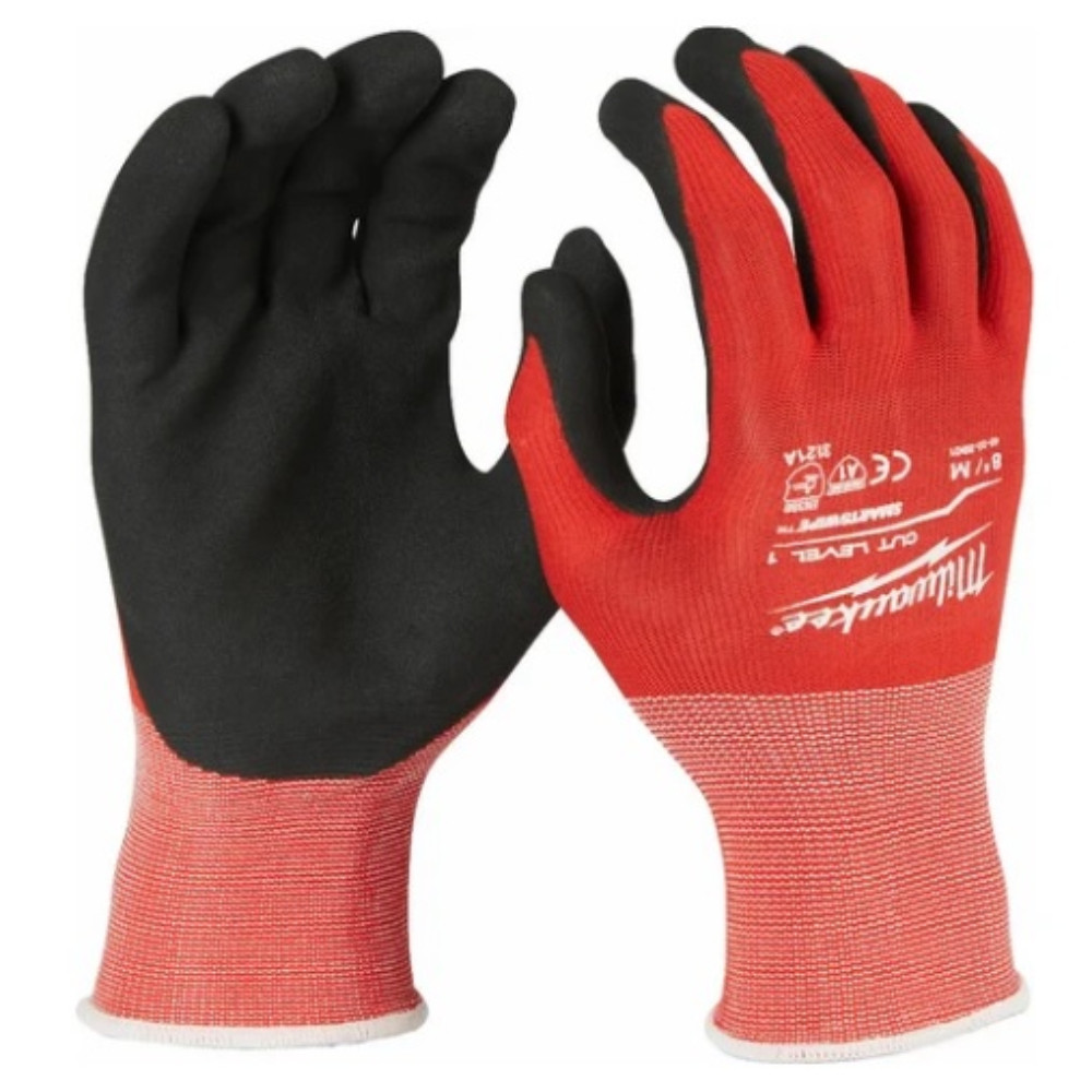 Перчатки Milwaukee, уровень 1, размер M/8 4932471416 предназначены для защиты рук от порезов, ссадин и загрязнений во время строительных работ.