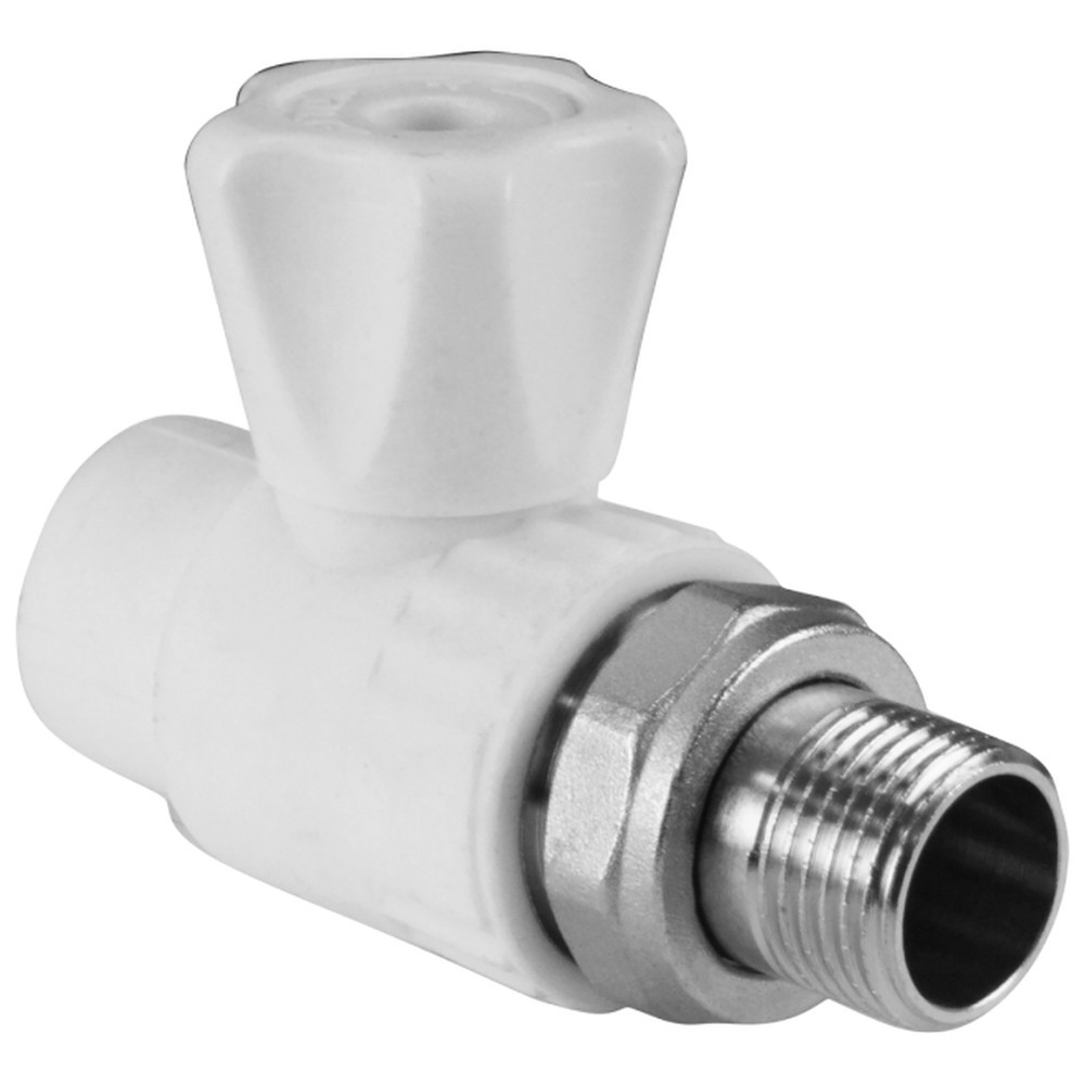 Шаровый кран полипропиленовый для радиатора прямой PPRC 20*1/2 , белый