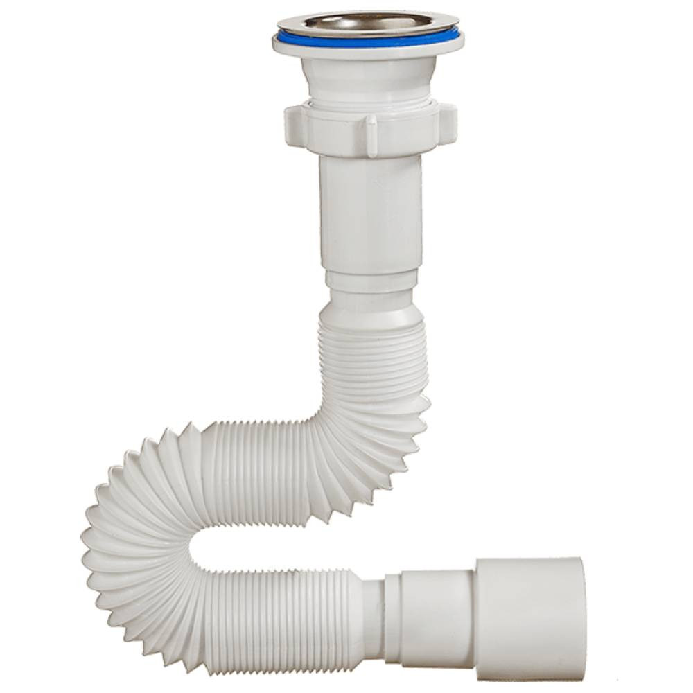 Гибкая труба 1 1/2"х40/50 с выпуском с нержавеющей чашкой д.70мм для раковины и мойки. Длина гибкой трубы 320-650мм.