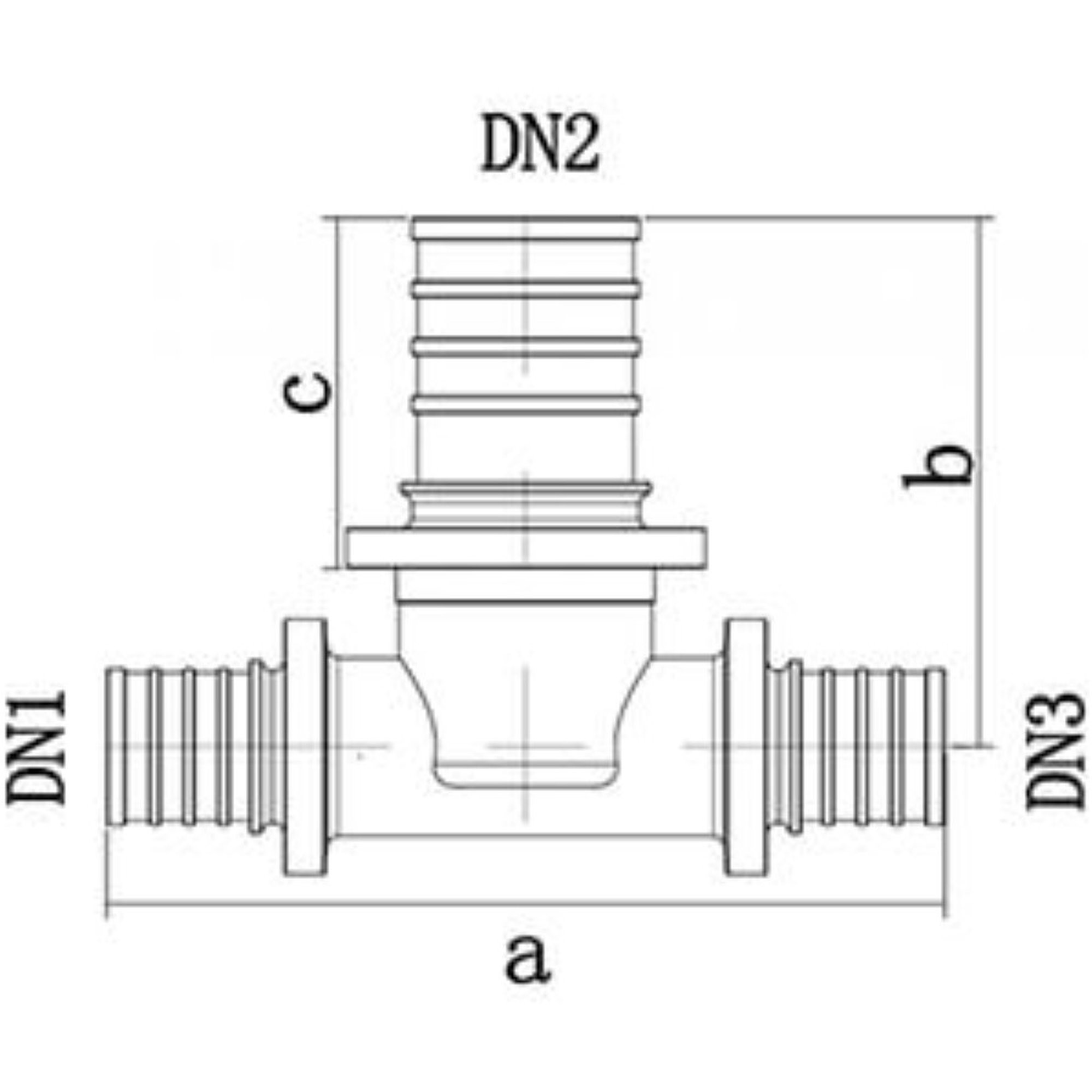 Конструкция фитинга позволяет осуществлять плавный переход между трубами разного диаметра, сохраняя герметичность системы. Центральный отвод имеет уменьшенный размер, что обеспечивает оптимальное распределение потока рабочей среды.
