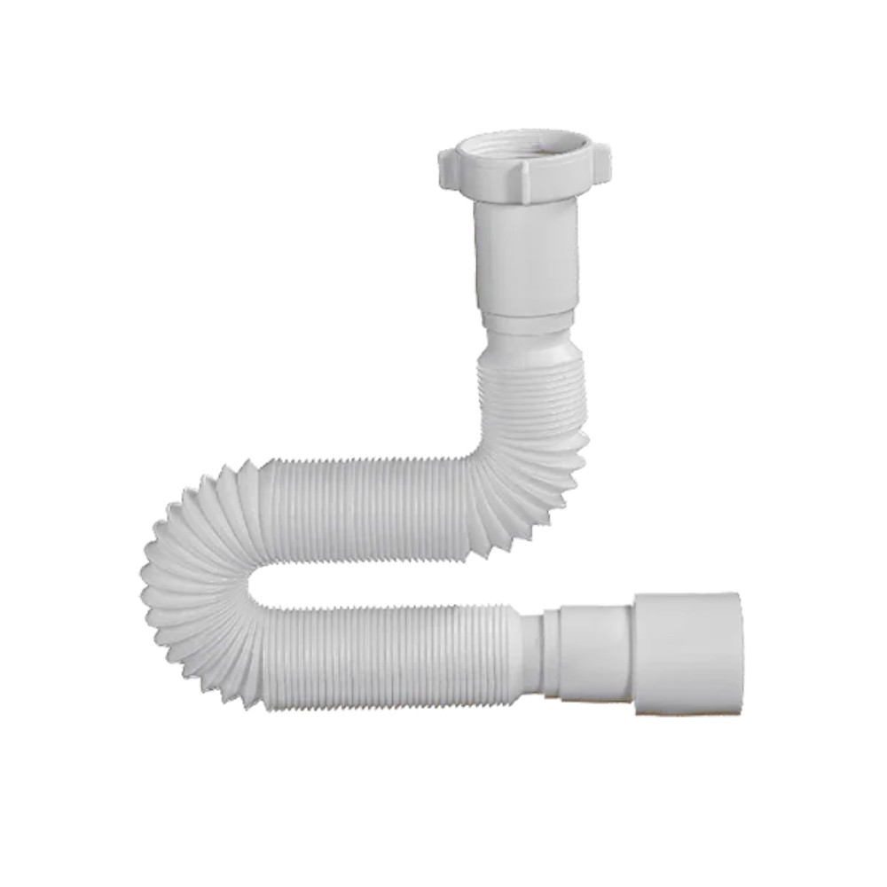 Гибкая труба 1 ½" х 40/50 без выпуска, с гайкой с резьбой 1 ½". Используется для соединения сифона с торцевым выходным соединением с диаметром 40 мм или выпуска с резьбой 1 ½" и канализации с входом д.50мм или д.40мм. Длина гибкой трубы 470-1250мм.