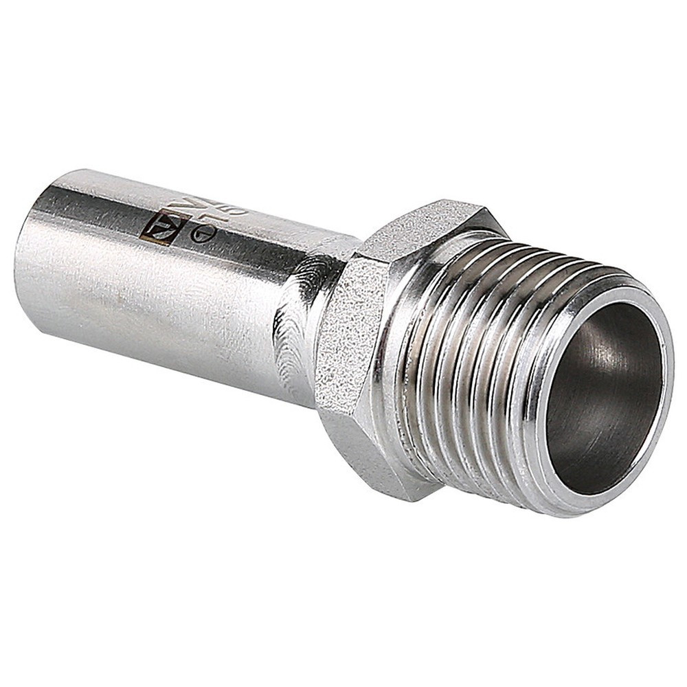 (VTi.906.I) Вставка с наружной резьбой VTi.906.l предназначена для использования совместно с пресс-фитингом системы VALTEC INOX-PRESS при монтаже трубопровода из нержавеющей стали – для перехода с пресс-соединения на резьбовое. Изделие изготовлено из стали AISI 304.
